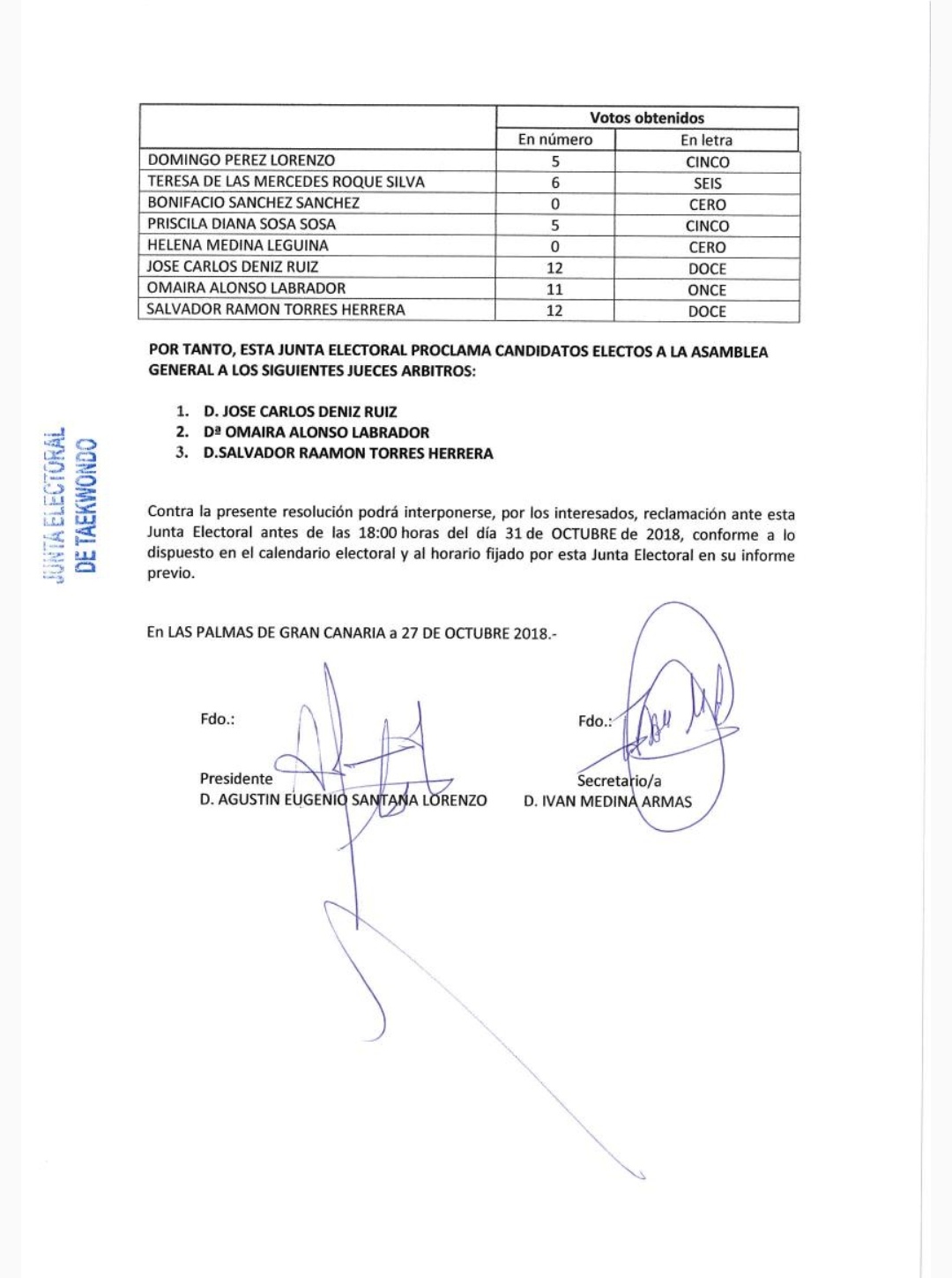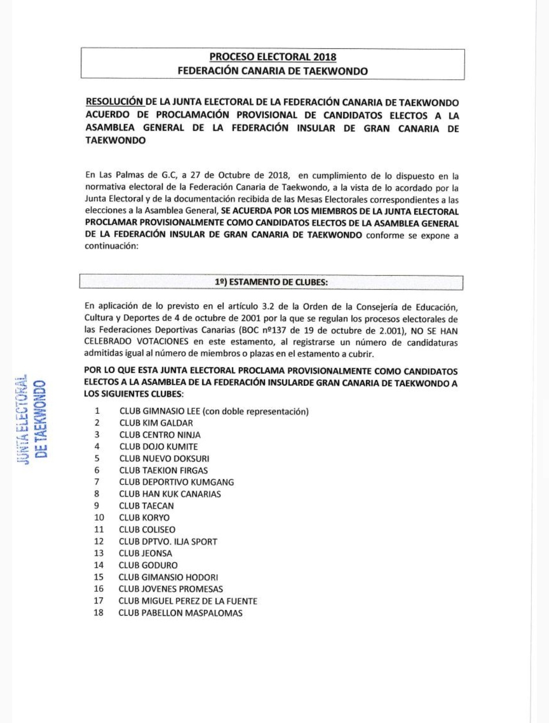 PROCLAMACION PROVICIONAL MIEMBROS ELECTOS