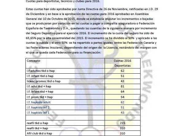 Se procede a la publicación y difusión de las normas administrativas y precios federativos vigentes para el presente año 2016, que afectan a técnicos, clubes, árbitros y deportistas federados, habiendo sido aprobados por la Junta Directiva y con los criterios para el 2016 aprobados por la Asamblea General Ordinaria, celebrada para tratar este tema, entre otros,