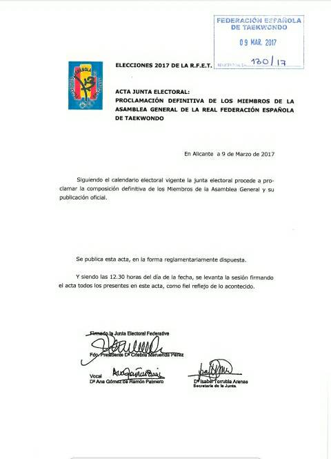 Uncategorized PROCLAMACIÓN DEFINITIVA MIEMBROS ASAMBLEA GENERAL RFET 17/03/201717/03/2017 admin Como ya les adelantábamos, 3 serán los representantes del taekwondo canario para la Asamblea General de la Real Federación Española de Taekwondo, para los próximos 4 años: